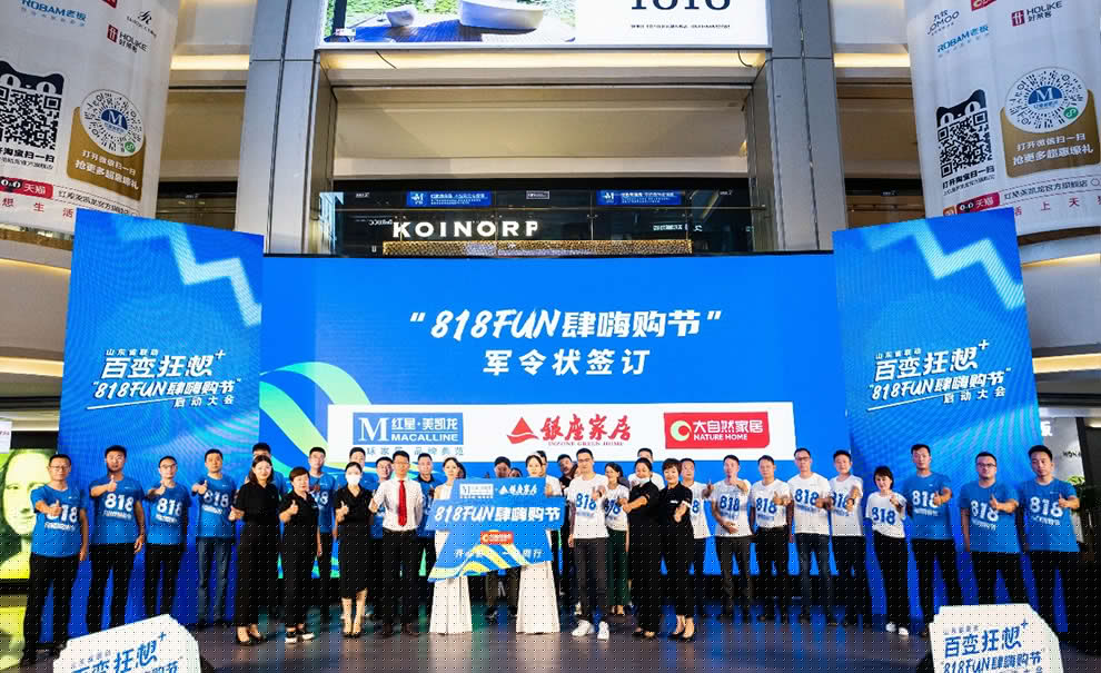 (圖為7月21日,山東濟南,紅星與大自然家居舉行818FUN肆嗨購節(jié)軍令狀簽訂儀式)