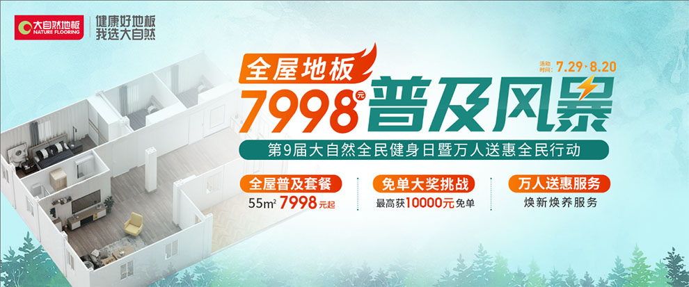 在本次紅星818FUN肆嗨購節(jié)中,大自然家居也重磅推出四大優(yōu)惠活動:第九屆大自然家居全民健身活動,大自然地板“板小俠”萬人送惠服務(wù),大自然家居全屋地板普及風(fēng)暴,萬元免單大獎挑戰(zhàn)活動。