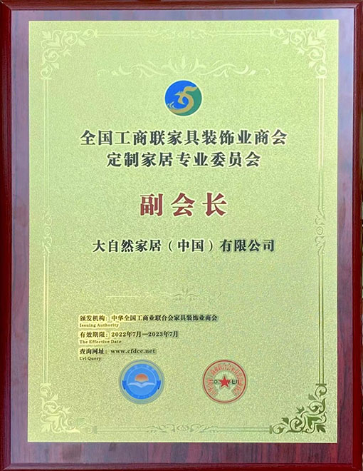 大自然家居當選“全國工商聯家具裝飾業商會定制專委會副會長”