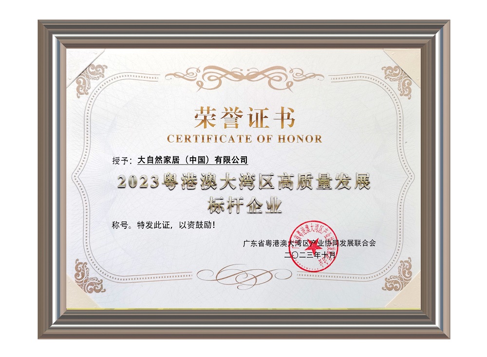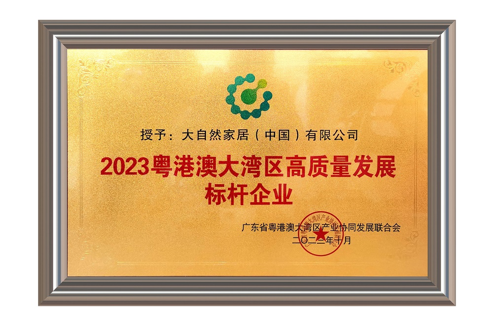 大自然家居作為一家專注于環(huán)保家居產(chǎn)品創(chuàng)新與研發(fā)的企業(yè),在長期的發(fā)展中積極響應(yīng)國家環(huán)保政策,不斷推出符合國際標(biāo)準(zhǔn)的高質(zhì)量產(chǎn)品。憑借其卓越的企業(yè)實力和持續(xù)的創(chuàng)新能力,大自然家居成功獲得了“2023 粵港澳大灣區(qū)高質(zhì)量發(fā)展標(biāo)桿企業(yè)”稱號。