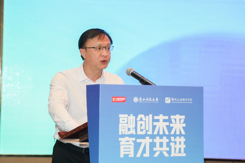 廣西壯族自治區工信廳二級巡視員楊富剛、廣西壯族自治區林業局二級巡視員冷光明、柳州市人民政府二級巡視員蔣為民、柳州職業技術學院黨委書記劉子林、廣西科技大學副校長秦小云、大自然家居董事、常務副總裁佘嘉浚、中國林產工業協會副秘書長李東妍、柳州市教育局黨組書記、局長、市委教育工委副書記潘旭陽、鹿寨縣委書記王軼為共同體成立揭牌,相關院校、企業、科研院所等負責人參加大會。
