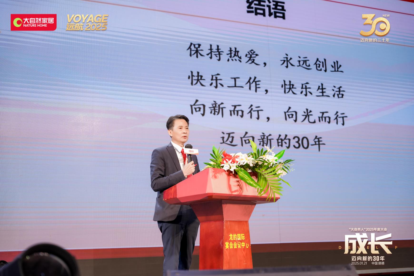 會上,大自然家居集團董事會主席、集團總裁(CEO)佘學彬,發表“穿越周期? 堅韌成長”主題報告。佘學彬指出,面對復雜多變的動蕩和蕭條下行的經濟環境,既要保持定力,又要靈活應變,首要任務是“破局”,破守舊的局、內卷的局。在內卷中堅韌成長,是開啟2025年的唯一答案。