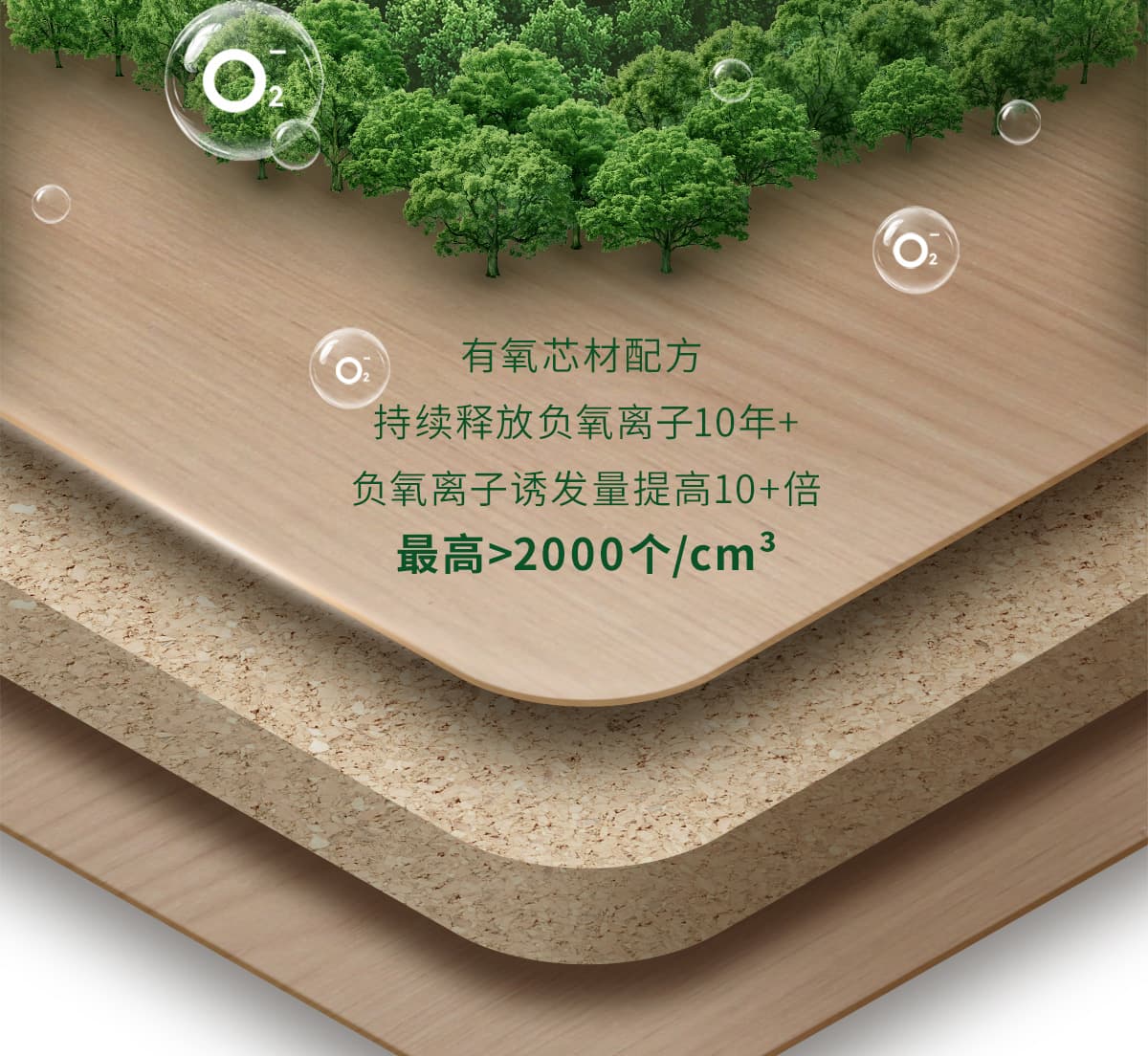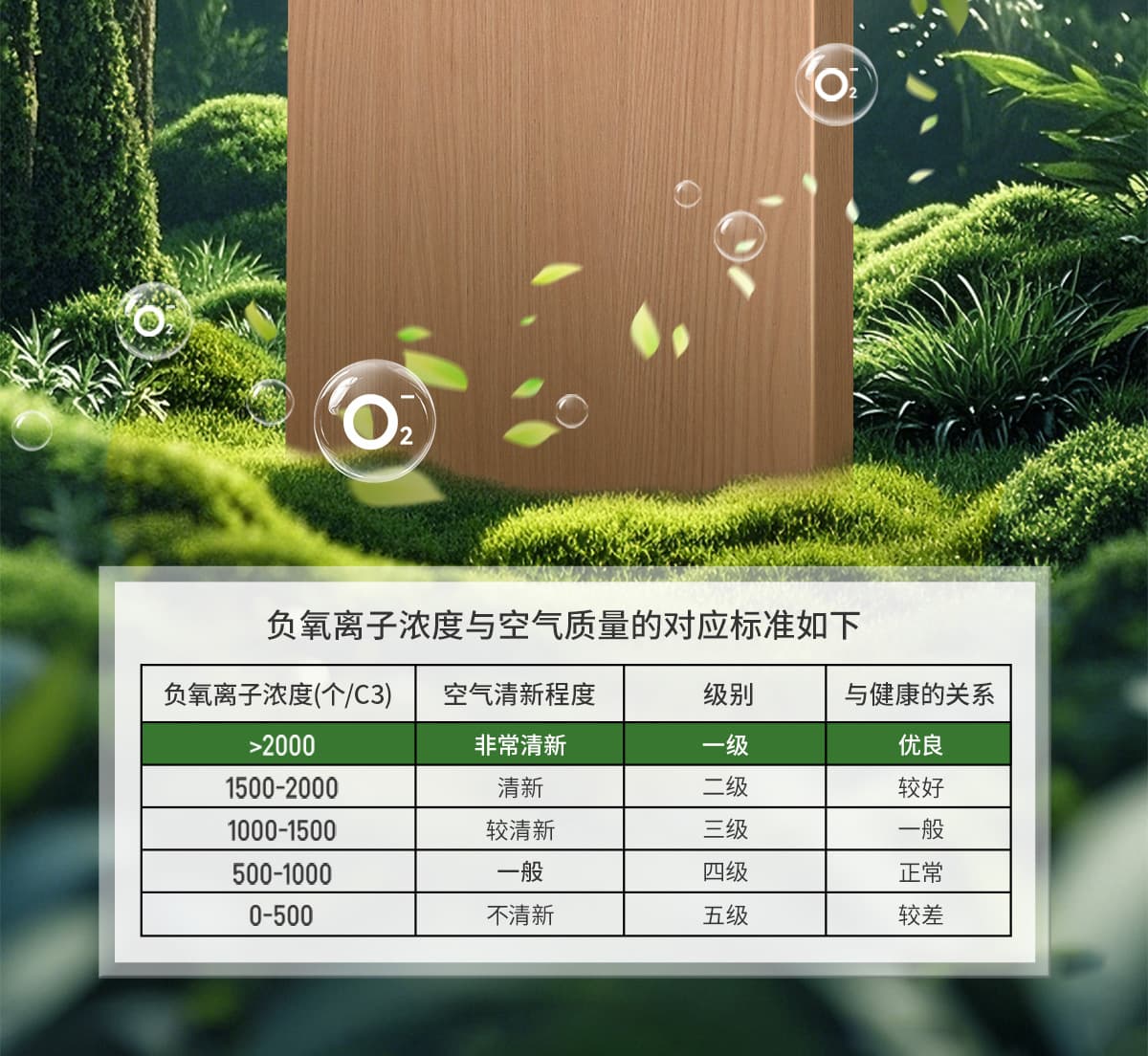 誘發空氣負離子量 比基礎環境提高10倍+