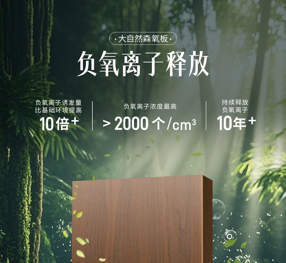 誘發空氣負離子量 比基礎環境提高10倍+
