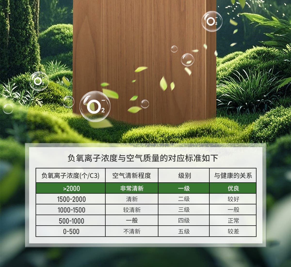 誘發空氣負離子量 比基礎環境提高10倍+
