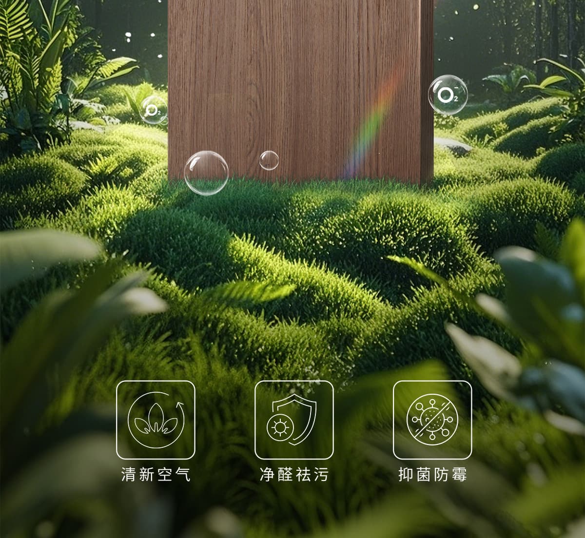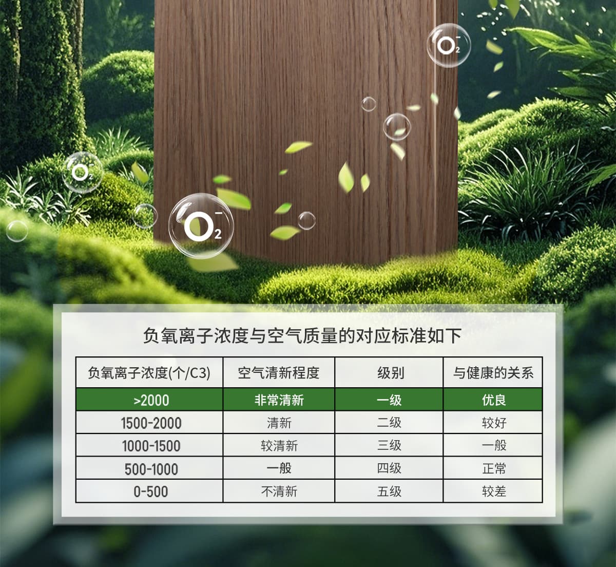 誘發(fā)空氣負離子量 比基礎(chǔ)環(huán)境提高10倍+