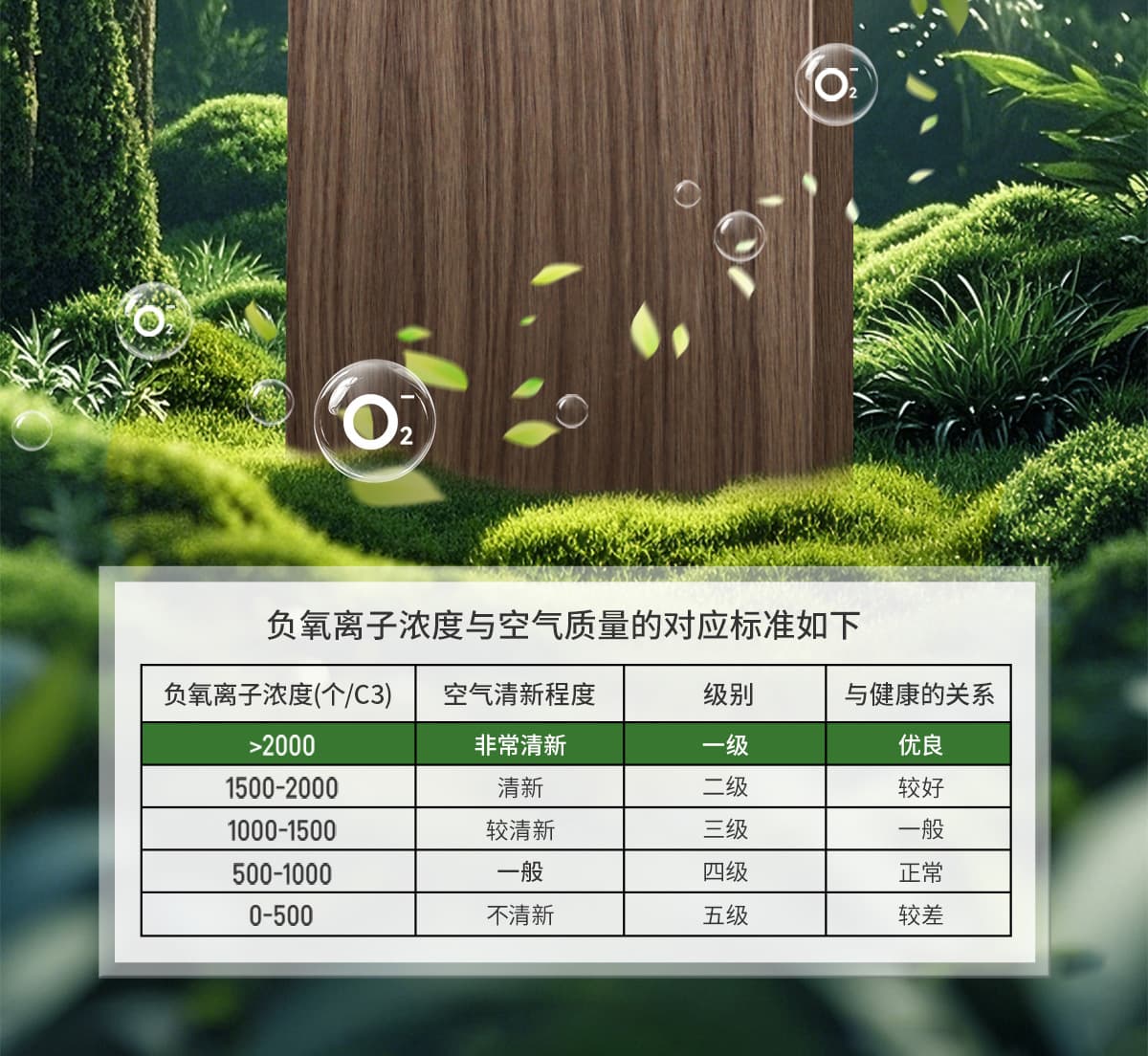 誘發(fā)空氣負(fù)離子量 比基礎(chǔ)環(huán)境提高10倍+