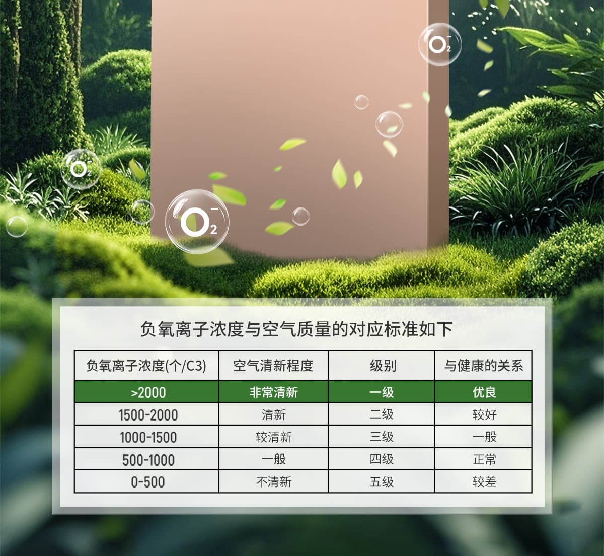 誘發空氣負離子量 比基礎環境提高10倍+